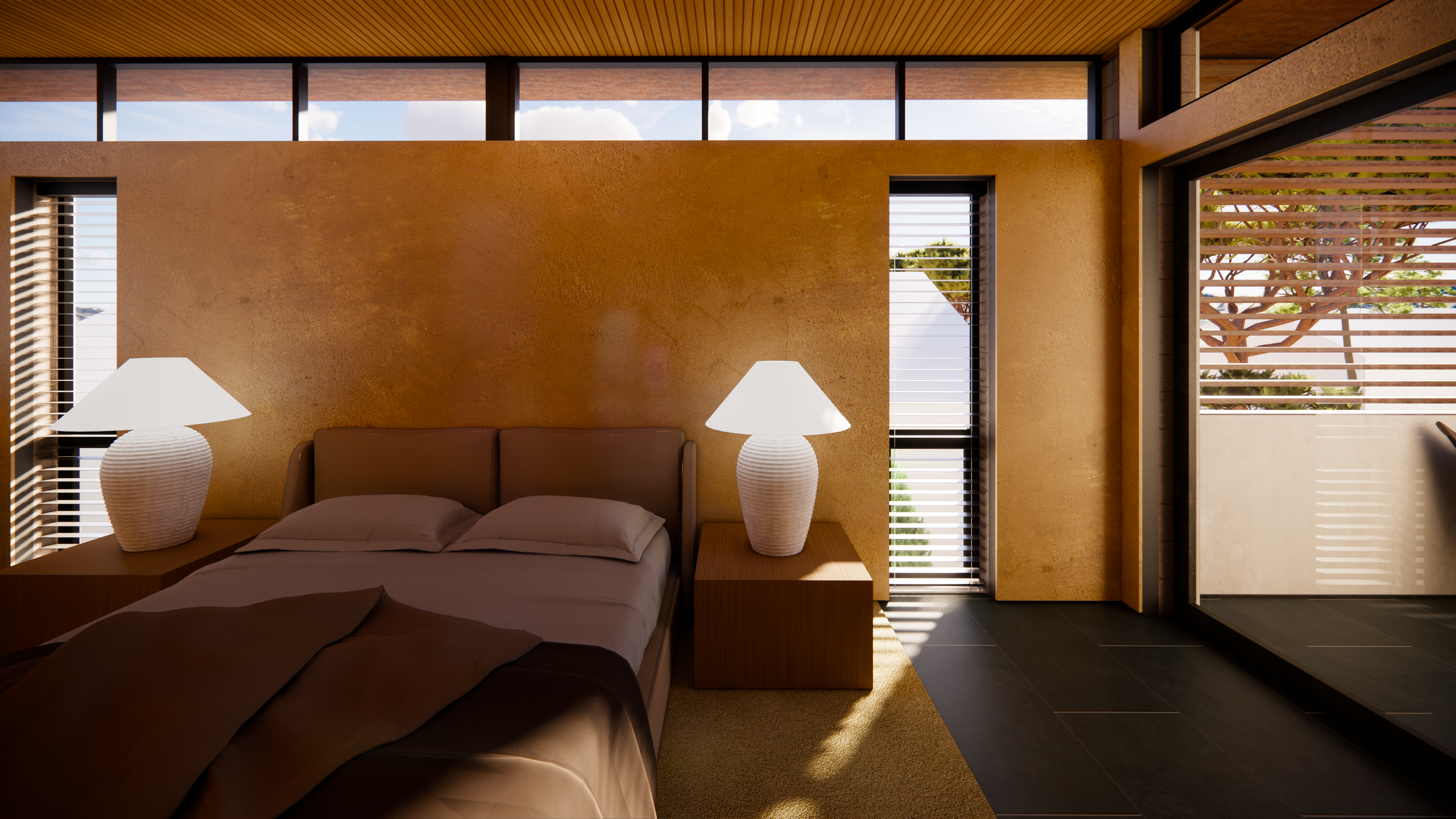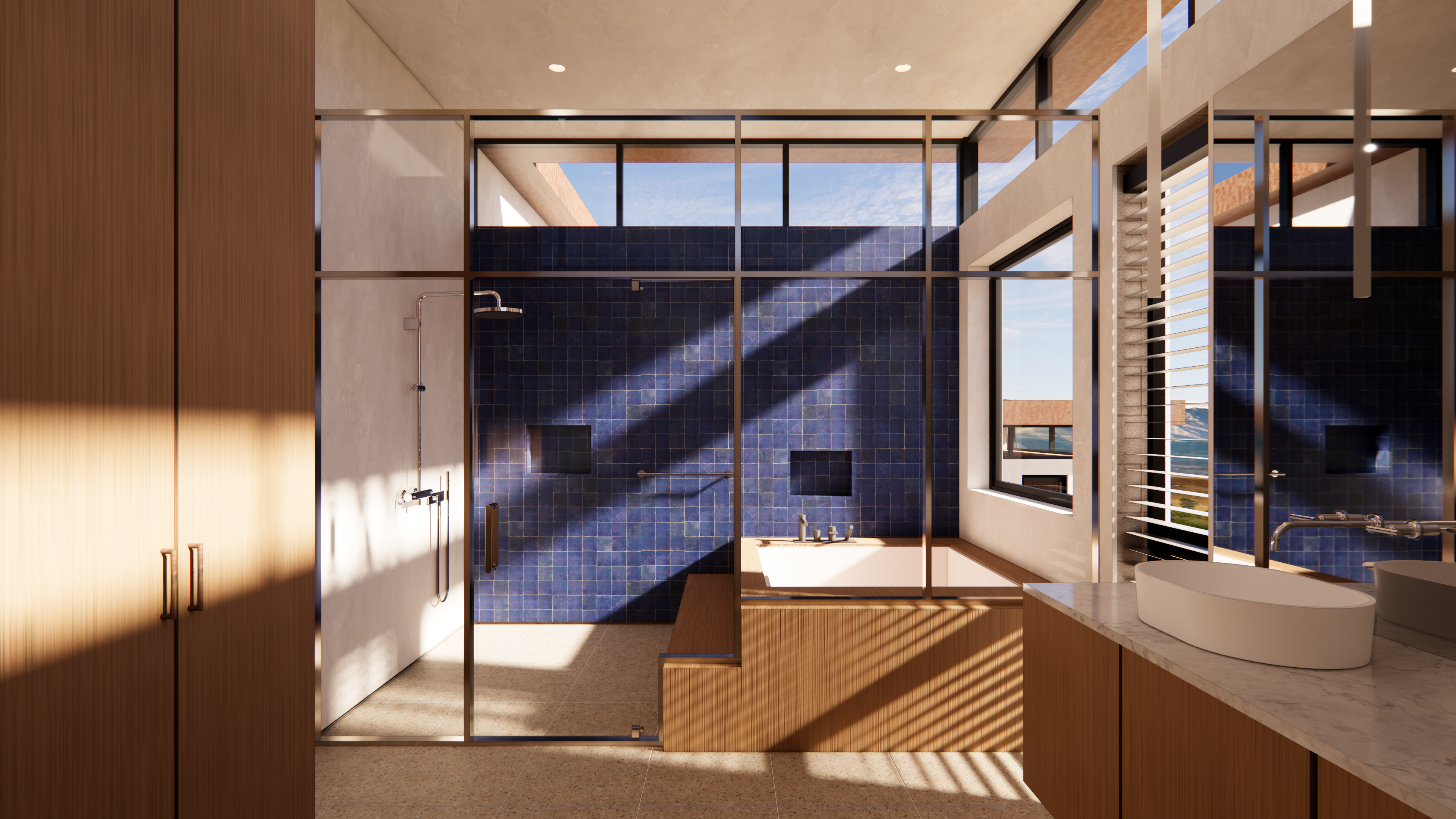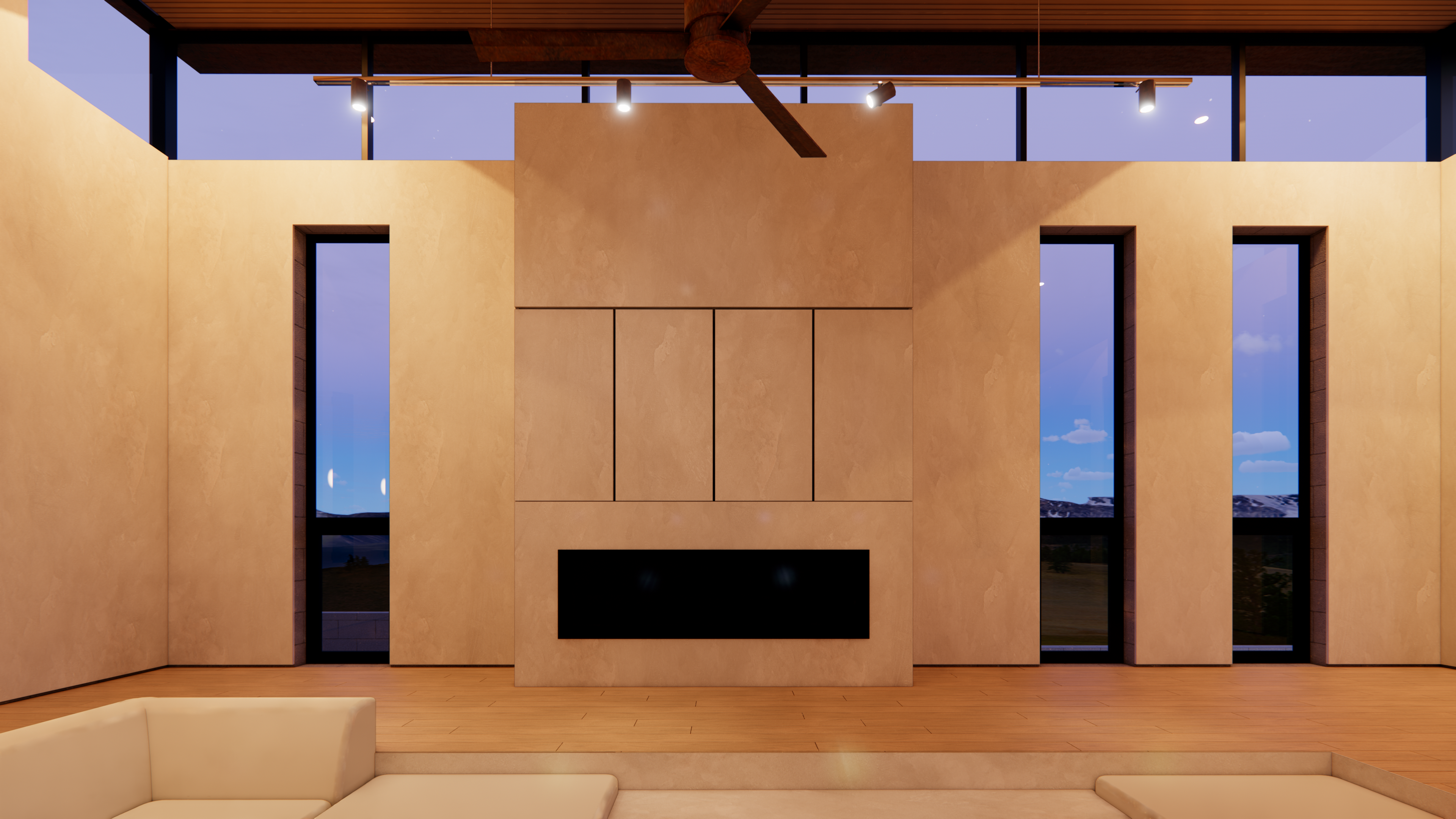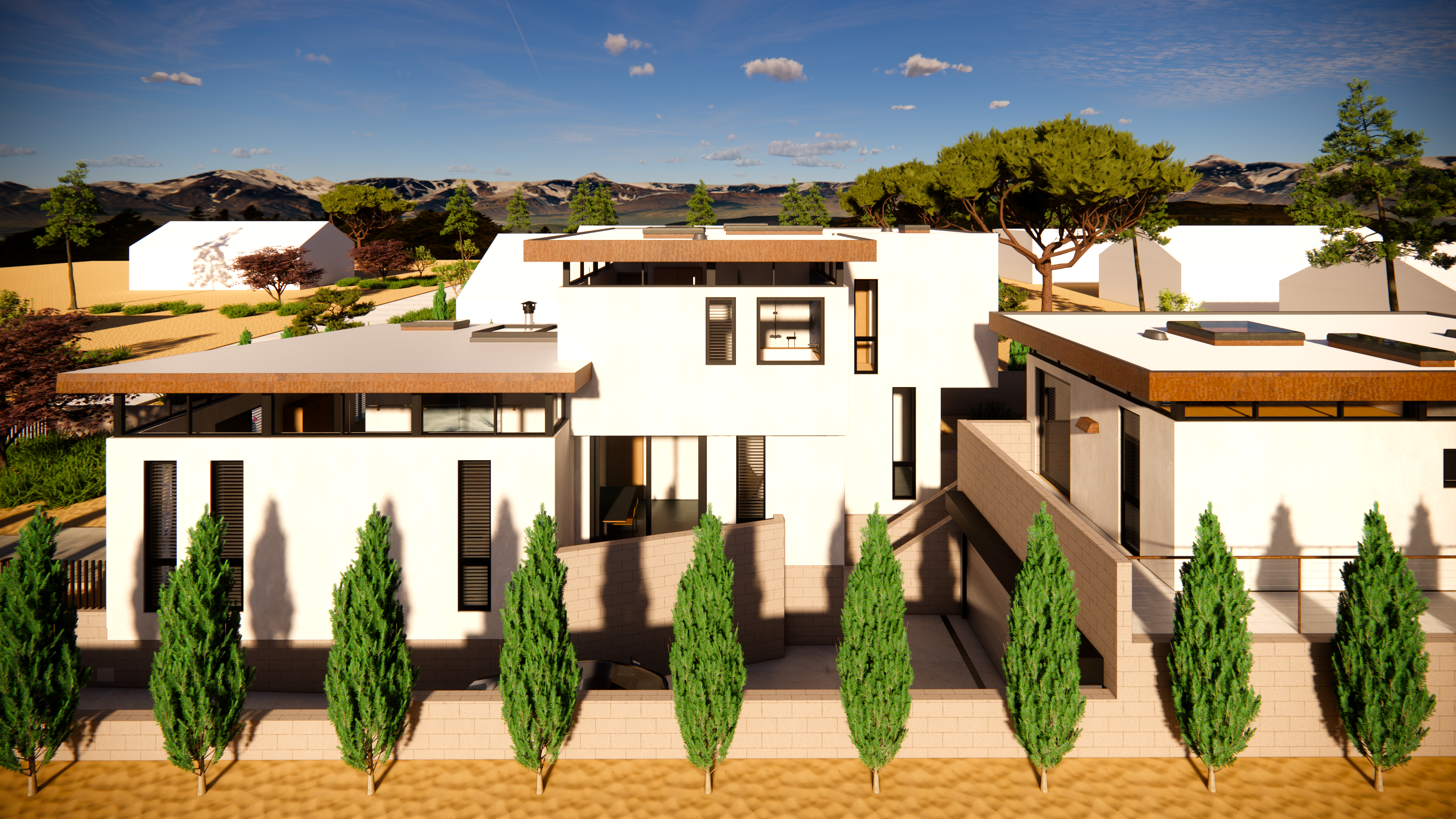 This mid-century inspired project seeks to contribute a new armored, yet comfortable prototype for future construction in the affected area of Pacific Palisades and Altadena. Utilizing the same general footprint of the previous home, this new design offers a strikingly contemporary update, in terms of form and organization, building systems and materials.